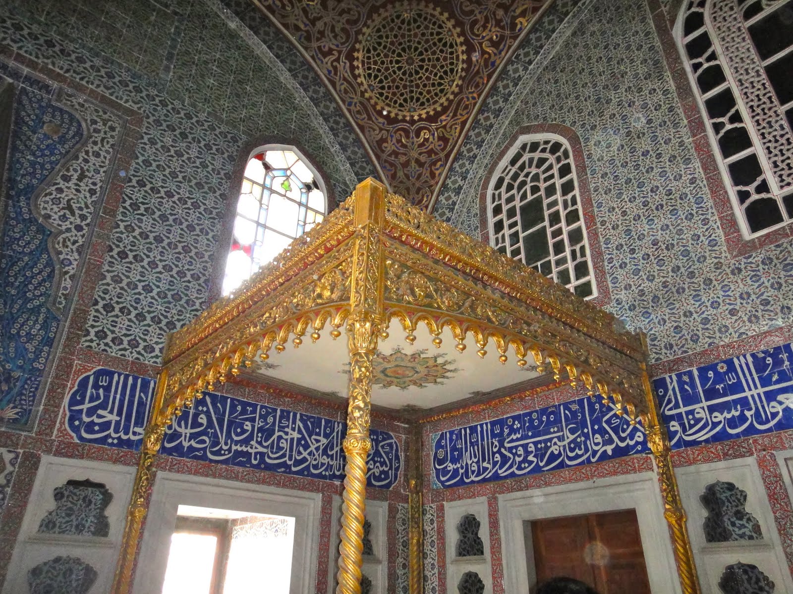 We are staying in a four-star hotel near Istanbul's most popular historical attractions. They call this area the old city, and the new city is the more modern, urban area. Makes sense huh? Earlier in the trip, Mary Louise had said that it would be very cool if she and I were roommates in Istanbul because we will be here for five nights. Somehow we got our wish, and we have a very cozy hotel room. It has gold crown molding, and kind of has a palace look with fancy chandeliers and tiles. Our tour guide led us to an area to eat lunch that she didn't think would be too expensive. All 19 of us ate a cennet place, which is like a Turkish quesadilla. The food actually tasted really good, but the restaurant itself was weird. The tables and chairs were really short, and it was very dirty. I was pretty disgusted, but luckily the waiters were very friendly and had almost perfect English. Sorry Mom and Dad, but I think I'll stick to the expensive places. The expensive places are comparable to a meal for ten Euros in Greece. That was only my first eating experience over here, so I'm assuming they're only going to get better. During our meal, we heard the very loud Muslim chants. It's part of their worship that they do five times a day. On the way back from lunch we saw them kneeling and bowing in front of the mosques. I plan to get a picture of that too. The mosques here are so beautiful!